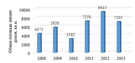 - удельный вес ветхого и аварийного жилого фонда - 16,1%. - 597 семей стоят на учете по улучшению жилищных условий. - Количество семей, улучшивших свои жилищные условия за 2013 г. - не более 2,5 %. - Динамика ввода в действие жилых домов: