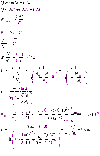 ЕГЭ 2006 В микрокалориметр теплоемкостью 100 Дж/K помещен образец радиоактивного кобальта с молярной массой 0,061 кг/моль. Масса образца 10 мг. При распаде одного ядра кобальта выделяется энергия