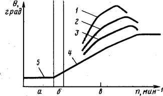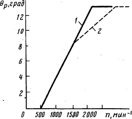 Рис. 3.10. Типовые характеристики центробежных регуляторов: 1 — пружнны с одинаковыми характеристиками жесткости; 2 — пружины с разными характеристиками жесткости