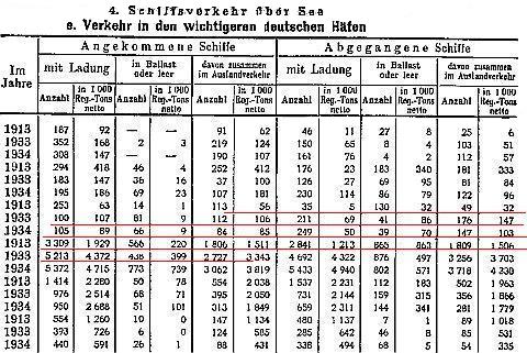 "Statistischen Jahrbuchs fuer das deutsche Reich" Jahrgang 1935 (фрагмент) (стр. 195, 7 строка таблицы, 5 колонка –. подчёркнуты ключевые гаммы)
