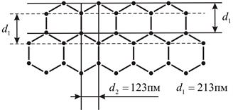 Рис.3. Плоскости графита, соответствующие первым двум дифракционным кольцам