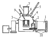 Рисунок 6. Схема вакуумной индукционной печи полунепрерывного действия Здесь показана схема вакуумной индукционной печи полунепрерывного действия. Печи этого типа имеют три камеры: плавильную (2), загрузочную (8) и камеру изложниц (1). В плавильной камере установлен водоохлаждаемый индикатор с огнеупорным тиглем (3), в котором проводиться плавление шихты. Каркас тигля, выполненный из уголков нержавеющей стали, опирается на цапфы. При сливе металла и чистке тигля последний наклоняется с помощью механического или гидравлического привода. Камера изложниц и загрузочная камера сообщаются с плавильной камерой через вакуумные затворы (6 и 10), которые позволяют загружать шихту в печь и выгружать слиток без нарушения вакуума в плавильной камере. Присадка легирующих и раскислителей осуществляется через дозатор (9), установленный на крышке печи (7). Для контроля процесса плавки печь снабжена гляделкой (4) и термопарой (5). Технология выплавки металла в вакуумной индукционной печи полунепрерывного действия определяется маркой выплавляемой стали и качеством шихтовых материалов. Для плавки применяют шихтовые материалы, очищенные от масла и влаги. Для легирования используют ферросплавы и чистые металлы. Перед загрузкой шихту предварительно прокаливают. После загрузки печи включают ток и расплавление шихты ведут на максимальной мощности. При появлении первых порций жидкого металла и при наличии в шихте углерода в печь напускают аргон до давления 1,3 • 104 Па для предотвращения выплесков жидкого металла в следствие бурного протекания реакции [C] + [O] = COгаз. После полного расплавления шихты металл рафинируют при давлении 1,3 - 0,13 Па от водорода, азота, кислорода и примесей цветных металлов. Раскисление стали происходит в основном по реакции [C] + [O] = COгаз, равновесие которой при низких давлениях сдвигается вправо. В период рафинировки осуществляют также легирование металла. В первую очередь присаживают хром и ванадий, потом титан. Перед разливкой в металл вводят алюминий, редкоземельные металлы, кальций и магний. Для получения плотного слитка разливку проводят обычно в атмосфере аргона. Основным недостатком вакуумных индукционных печей является контакт жидкого металла с огнеупорной футеровки тигля, что может приводить к загрязнению металла материалом тигля. Date: 2015-07-17; view: 487; Нарушение авторских прав |