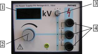 Перед выполнением работы изучите экспериментальную установку (рис.4), электрические соединения в которой соответствуют рис.6. Включите источники питания (рис.4, поз.2, 3) выключателями, расположенными на их задних стенках. Вращая ручки 1 и 2 универсального источника питания (рис.8) по часовой стрелке, установите напряжение на клеммах G 1 и G 4 электронно-лучевой трубки (рис.5) равными: ручка 1, клемма G 1, – 25 В ручка 2, клемма G 4 – 250 В.