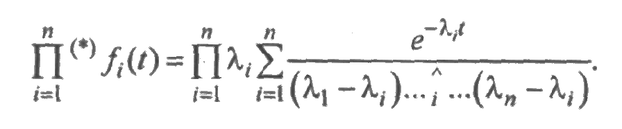3.3.2. Причины неэкспоненциальности случайных параметров, отказов и восстановлений технических систем В настоящее время большинство практических расчетов в области надежности предполагает использование экспоненциального закона распределения времени между отказами элементов и параметров функционирования системы, таких как время принятия решения, время перерыва в работе элементов, время существования скрытого отказа и т. д. Это обусловлено, с одной стороны, известным положением о сходимости суммарных независимых потоков отказов к пуассоновскому потоку и, с другой стороны, сравнительной простотой аналитических расчетов. Известно, однако, что использование экспоненциального закона, как правило, приводит к существенному расхождению аналитических и экспериментальных данных о надежности сложных систем. Если не учитывать неэкспоненциальность распределений времени безотказной работы и времени восстановления элементов сложной системы, то это может привести к чрезвычайно большим ошибкам [97,108,109]. Элементы электроники, как правило, имеют экспоненциальное распределение времени безотказной работы. Однако устройства, содержащие непоследовательно соединенные в смысле надежности элементы, уже не обладают экспоненциальными распределениями. Поэтому включение этих устройств в систему в качестве ее элементов приводит к необходимости исследовать надежность системы при неэкспоненциальных распределениях. Покажем, что при нагруженном резерве вероятность безотказной работы устройства подчиняется гиперэкспоненциальному распределению, а при ненагруженном или смешанном резервировании — обобщенному гамма-распределению. Экспоненциальное распределение обладает следующим свойством: свертка (см. разд. 2.5) плотностей