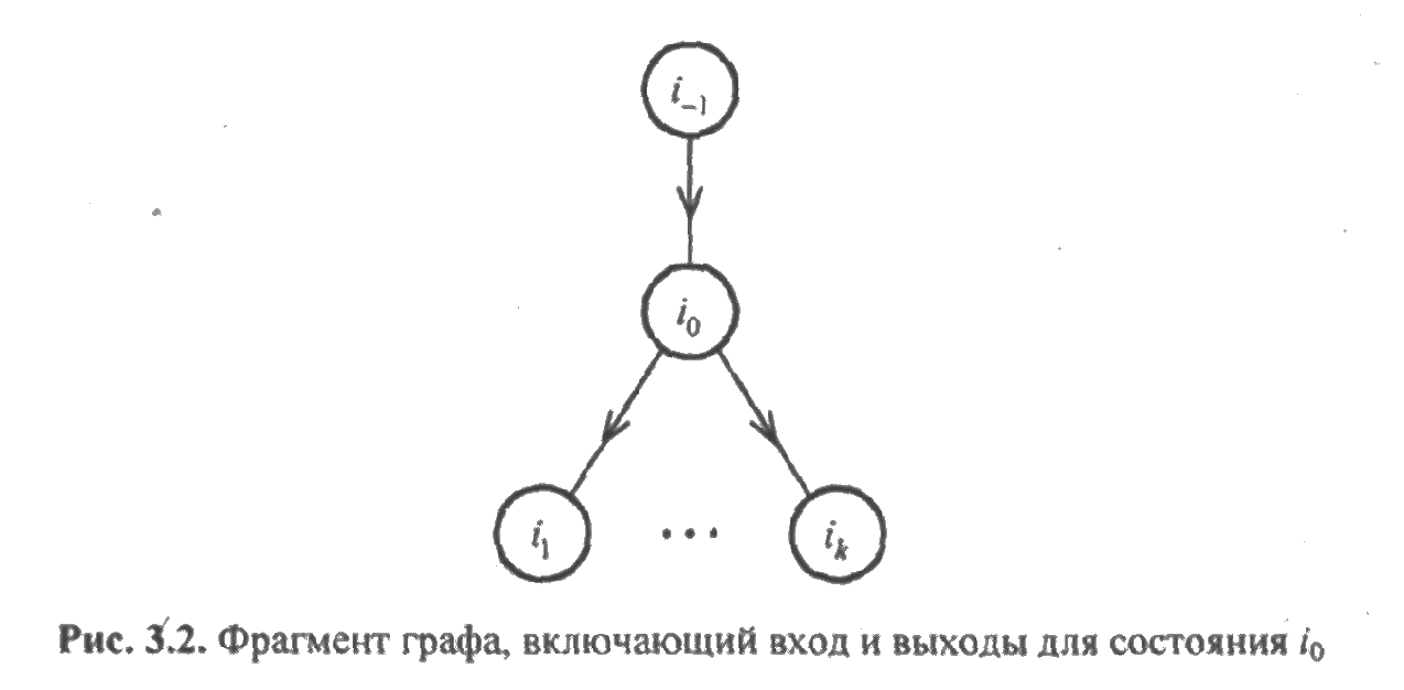 Функционирование невосстанавливаемого устройства, элементы которого имеют экспоненциальные распределения, описывается графом состояний, в ветви которого проставлены параметры этих распределений. На рис. 3.2 приведен фрагмент графа, содержащий вершину i 0, предшествующую ей вершину i -1, и вершины i 1, i2,..., i k, следующие из данной вершины за один пере ход.