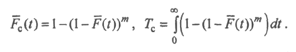 Как следует из таблицы, для вырожденного распределения наработка до отказа Тс совершенно не чувствительна к числу резервных элементов. Для равномерного распределения резервирование также дает незначительный выигрыш (не более чем вдвое). Распределение Вейбулла при достаточно большом значении параметра α не оказывает существенного влияния с ростом т на изменение наработки до отказа. В то же время для распределения Вейбулла при молодеющем распределении можно получить любой сколь угодно большой выигрыш. Заметим, что для ненагруженного резерва GT есть величина постоянная, равная т. Приведенные примеры доказывают необходимость количественной оценки надежности систем при распределениях, отличных от экспоненциальных: она продиктована существенной зависимостью показателей надежности от законов распределения и дисциплины восстановления отказавших элементов.
