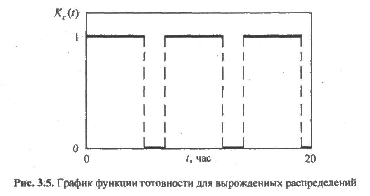 В этом случае в явном виде найти функцию готовности не удается. Тем не менее, расчеты, выполненные на ЭВМ, показывают достаточную близость функций готовности для равномерного распределения и распределения Эрланга. Таким образом, в отличие от экспоненциального случая, когда функция готовности всегда является монотонно убывающей, в общем случае функция готовности часто имеет колебательный характер. Поэтому может оказаться, что готовность системы для небольшого времени эксплуатации меньше, чем при ее длительной эксплуатации. Этот факт часто игнорируется на практике, что может привести к нежелательным результатам. Можно показать, что с уменьшением дисперсии времен безотказной работы элементов усиливается колебательный характер функции Кг(t) и значительно увеличивается время наступления стационарного режима системы.