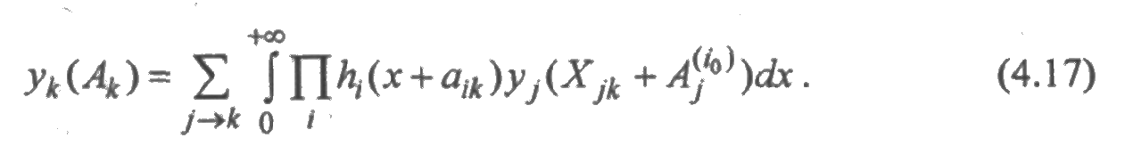 где произведение распространяется на все индексы iϵRkᴗRk’ᴗWkᴗWk’,а рk(t) — некоторые функции времени. Подставляя это решение в левую часть (4.15) и используя равенство —hi’(x)=