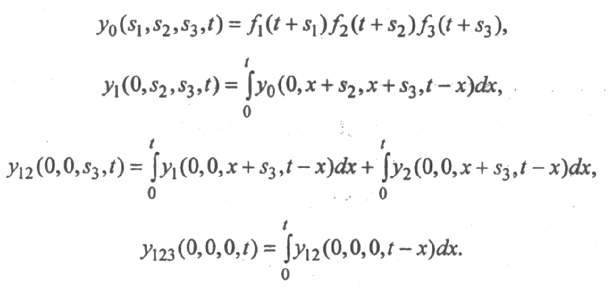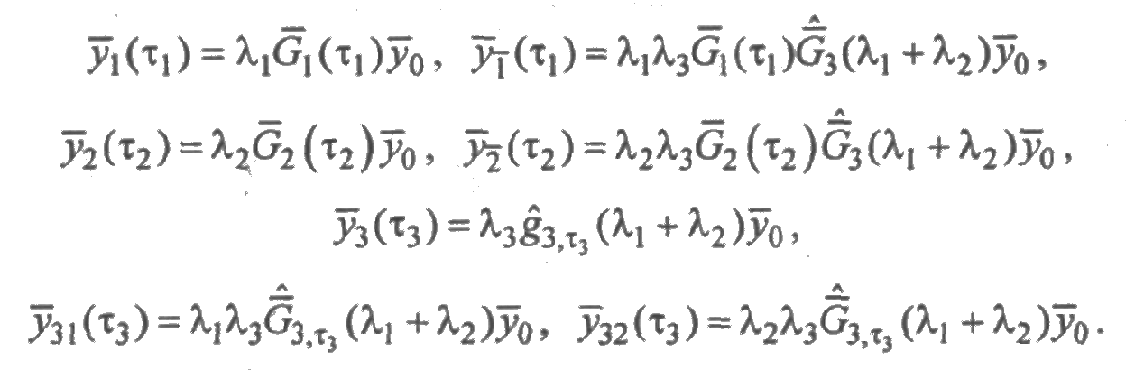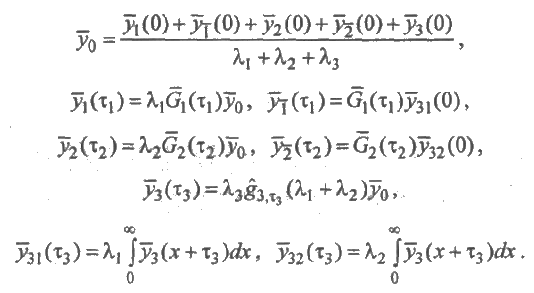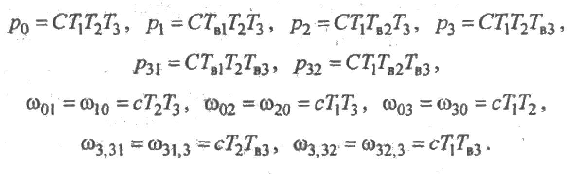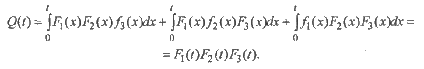 ПРИМЕР 4.6. Составить систему интегральных уравнений, описывающую стационарный режим функционирования основного соединения 3-х элементов из разд. 4.2.3.