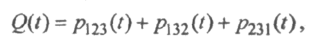 ПРИМЕР 4.7. Описать функционирование невосстанавливаемой системы для основного соединения 3-х элементов из разд. 4.2.3.