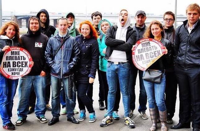Одна из групп питерского Стопхама. Какова должна быть реакция нарушителя ПДД, когда на пути появляется вот такой контингент?