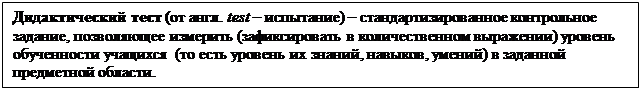 Тесты (англ. test, «испытание») применяются в медицине, психологии, педагогике и даже технике. Так, психологические тесты позволяют диагностировать качества и свойства личности, общие и специальные способности, уровень интеллекта. Тесты на профпригодность помогают определить уровень профессиональных знаний, навыков и умений, а также морально-деловых качеств сотрудника в той или иной трудовой области. Особую группу составляют дидактические тесты (иначе: тесты учебных достижений), предназначенные для проверки и оценки уровня знаний, навыков и умений учащихся в процессе обучения.
