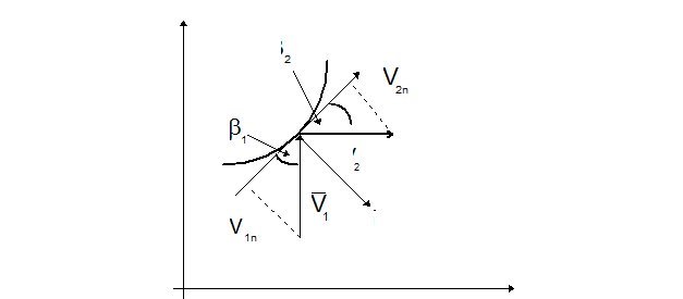 Рассмотрим это явление в прямоугольной системе координат х, у. Будем пренебрегать возможным разрушением частицы при ударе. Пусть D плоскость, проходящая через вектор скорости частицы в момент ее соприкосновения со стенкой и нормаль к стенке канала в этой точке. Спроектируем скорость частицы на нормаль и на касательную к стенке в плоскости D. Обозначим скорость частицы до и после удара о стенку через Тогда закон отражения частицы от стенки можно записать в виде