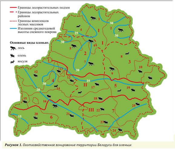 Характеристику ландшафтно-растительных условий (характеристика рельефа, типов леса по породному составу и возрасту, их площадей, процентного состава, мозаичность, компактность и др.). Оценку кормовых условий или степень обеспеченности зубров естественными кормами. Характеристику биоценотических факторов (численность, плотность населения копытных как пищевых и пространственных конкурентов и др.). Характеристику антропогенных и селитебных факторов (размещение сенокосов и населенных пунктов внутрилесного массива, использование лесных ресурсов, выпас крупного рогатого скота, побочное использование и др.). Районирование лесных угодий территории Беларуси (по аналогии с лесорастительным, почвенным, агротехническим и др.) целесообразно положить в основу видовой специализации и интенсификации ведения охотничьего хозяйства. Это позволит более эффективно осуществить те или иные биотехнические мероприятия, направленные на повышение продуктивности угодий и популяций охотничьих животных.