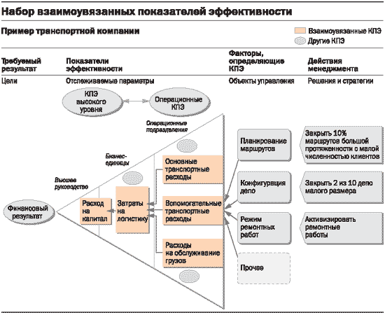 Существование набора взаимоувязанных КПЭ для различных уровней организации