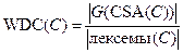где SG (CSA(C)) — объединение сильно склеенных лексем каждого из методов класса С, лексемы (С) — множество всех лексем данных класса С. Таким образом, класс без сильно склеенных лексем имеет нулевую сильную связность по данным. Слабая связность по данным (Weak Data Cohesion) — метрика, которая оценивает связность, базируясь на склеенных лексемах. Склеенные лексемы не требуют связывания всех секций данных, поэтому данная метрика определяет более слабый тип связности. Слабая связность по данным вычисляется по формуле: