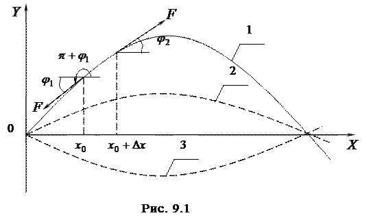 Алгебраическая сумма проекций сил, описываемых соотношениями (9.2), является силой, возвращающей отрезок На основании второго закона Ньютона результирующая сила, действующая на отрезок