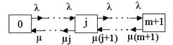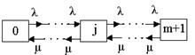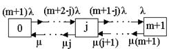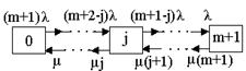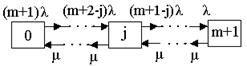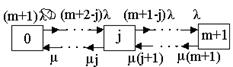 | | 57. Схема состояний восстанавливаемой системы с ненагруженным резервом и числом ремонтных бригад равным m+1: