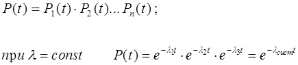 где Pi(t) - вероятность безотказной работы i-го элемента основной системы; mi - кратность резервирования i-го элемента; n - число элементов в основной системе.