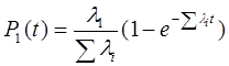 Переходы системы из исправного состояния в отказовое характеризуется интенсивностями отказов участков l1, l2, l3. В результате ремонта из состояния отказа система возвращается в исправное с интенсивностями m1, m2, m3. Методами теории марковских процессов можно найти вероятности нахождения системы в состояниях 0, 1, 2 и 3. Эти решения имеют следующий вид: