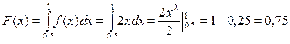 f (x) = 2 х, при 0 < x £ 1 0, при х > 1 Оценить количественно, что вероятность примет значение из диапазона (0,5; 1). Какова вероятность попадания случайной величины в диапазон (0,5; 1) при условии, что событие не появится. Решение: