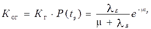 где lВ – интенсивность восстановления; μ – параметр потока отказов. Коэффициент оперативной готовности. Ког – предусматривает необходимость внезапного использования объекта, после чего требуется безотказное выполнение объектом основной функции в течение времени Т r: