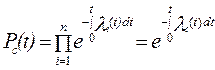 Работоспособность последовательной системы обеспечивается при условии, когда все n элементов системы находятся в работоспособном состоянии. Безотказность работы i – того элемента зависит от безотказности других: Рс(t)= Р1(t) ´ Р2(t) ´ … ´ Рi(t) ´ … ´ Рn(t) = Qс(t) = 1 - Рс(t) =1-
