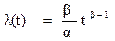 Распределение Вейбулла охватывает путем варьирования параметров широкий диапазон случаев изменения вероятностей. Наряду с логарифмически нормальным распределением оно удовлетворительно описывает наработку деталей по усталостным разрушениям, наработку до отказа. Представим функцию λ(t) в виде: