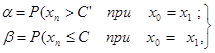 Статистические испытания основываются на том, что о генеральной характеристике испытываемой партии изделий судят по выборочным характеристикам. Очевидно, что при случайной выборке возможно возникновение различных ошибок в оценке партии изделий. Если в результате испытаний партия испытываемых изделий оценивается как негодная, то такую ошибку называют риском изготовителя (поставщика) a. Если в результате испытаний негодная партия испытываемых изделий оценивается как годная, то такую ошибку называют риском заказчика (потребителя) b. Целесообразно, чтобы обе величины a и b были достаточно малыми (менее 0,05—0,1). Для оценки степени годности изделий устанавливают три категории качества: 1) хорошее изделие, когда некоторый выборочный параметр xn£ х1 - определенной постоянной величины; 2) допустимое изделие, когда x2>xn>x1 где x2 - определенная постоянная величина; 3) брак xn³ х2. При применении метода однократной выборки от определенного количества выпущенных изделий производится одна случайная выборка определенного (п) объема по некоторому параметру xn, отвечающему генеральному параметру всей партии изделий. Партия изделий принимается при условии xn£ C и бракуется при условии xn>С, где С—оценочный норматив. Оценочный норматив может иметь два значения. Если оценочный норматив характеризует наименьшее число отказавших изделий в выборке, при котором результаты испытаний считаются отрицательными, то его называют браковочным числом С'. Если оценочный норматив характеризует наибольшее число отказавших изделий в выборке, при котором результаты испытаний считаются положительными, то его называют приемочным числом С. Пользуясь введенными определениями, получаем, что вероятности риска изготовителя (a) и риска заказчика (b) могут быть записаны в виде следующих уравнений: