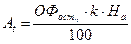 где ОФперв. - первоначальная стоимость основных фондов. При способе уменьшаемого остатка годовая сумма амортизационных отчислений начисляется путем умножения остаточной стоимости объекта основных средств на начало отчетного года на норму амортизации, умноженную на коэффициент ускорения. Годовая сумма амортизационных отчислений при способе уменьшаемого остатка рассчитывается по формуле: