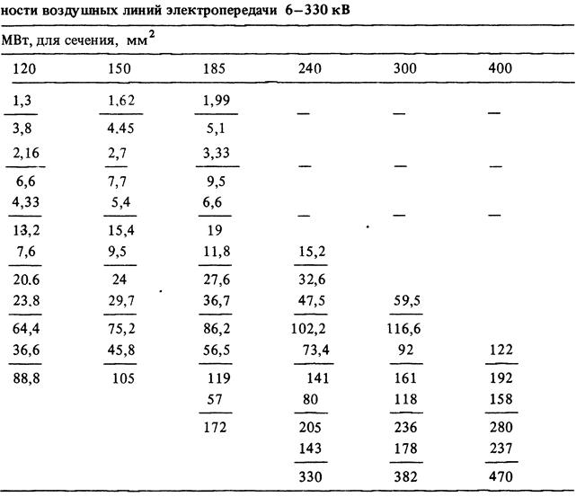 где Ip — расчетный ток в часы максимума энергосистемы, A; S — экономически целесообразное сечение, мм2. Годовое число часов использования максимума активной нагрузки, принимаемого при выборе S, меньше и составляет 0,7 Tmax., характеризующего Ртах (2.6) каждой из подстанций 5УР и 4УР. Таблица составлена для плотности тока J эк =1,1 А/мм2 для алюминиевых и сталеалюминиевых проводов при числе часов использования максимума нагрузки в год 3000-5000 и cosj = 0,9. Предельная длина линий по табл. 3.1, определенная технике-экономическими расчетами при потере напряжения 10%, составляет, например, 32 км при передаче мощности 10 МВт на напряжении 36,7 кВ; 75 км при 50 МВт на напряжении 115 кВ. В случае другого числа часов использования максимума, применения медного провода или кабеля вместо провода данные табл. 3.1 пересчитываются под другое нормированное значение J эк, приводимое ПУЭ. При оценке перспективы следует ориентироваться на умень-