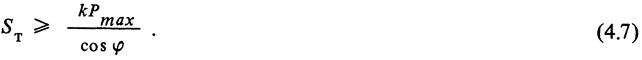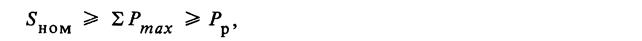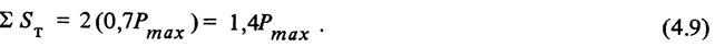 Формально запись (4.8) выглядит ошибочной: действительно, единица измерения активной мощности - Вт, полной (кажущейся) - В • А. Есть различия и в физической интерпретации S и Р. Но следует подразумевать, что осуществляется компенсация реактивной мощности на шинах подстанции 5УР, ЗУР и что коэффициент мощности cos j находится на уровне 0,92-0,95. Тогда ошибка, связанная с упрощением (4.7) до (4.8), не превосходит инженерную ошибку 10%, которая включает и приблизительность значения 0,7, и ошибку в определении фиксированного Pmax. Таким образом, суммарная установленная мощность двухтрансформаторной подстанции