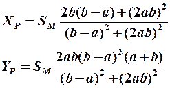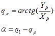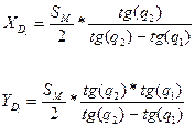 обозначив: а = tg (q2 – q1) и b = tg (q3 – q2) после несложных преобразований получим координаты полюса маневрирования: