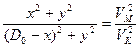 Выражение (4.3) представляет собой уравнение окружности в декартовых координатах. Найдем точки пересечения этой окружности с линией пеленга. Поскольку в этом случае y = 0, то (4.3) примет вид: