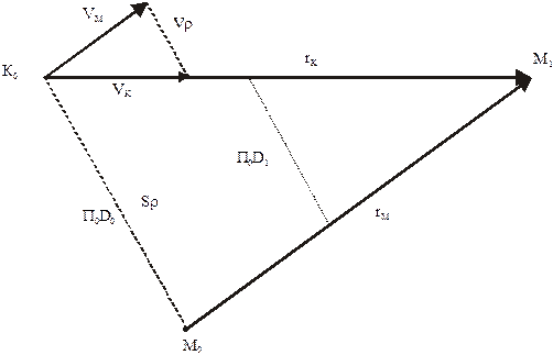 В соответствии с теоремой 1 при сближении при постоянстве пеленга (Рис.13) можно написать: