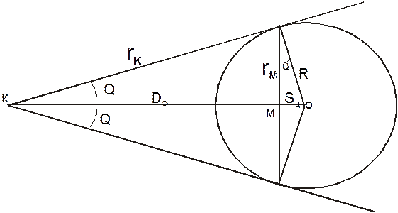 Рис.15 Условием возможности занятия позиции относительно БОМ при m ≥1 будет: ζ ≥ 900 – Q Действительно (Рис.15) из Δ-ка К0ОР1 можно написать: