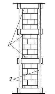 Усиление колонн стальными обоймами: 1-стойки из стальных уголков; 2- накладки из полосовой стали Эффект усиления колонн достигается после монтажа и сварки соединительных планок. Необходимо добиваться совместной работы стальной обоймы и колонны. Для этого в ряде случаев планки нагреваются до 1200 С и затем привариваются к вертикальным уголкам с последующим торкретированием или оштукатуриванием. При отсутствии подогрева возможно заполнение зазоров между колонной и соединительными планками жесткими растворами или растворами на расширяющихся цементах. Усиление преднапрягаемыми распорками, рис.25. Общая технологическая последовательность работ: – производится разгружение конструкции при необходимости; – устанавливается инвентарные подмости; – вокруг низа колонны разбирается пол и удаляется слабопрочный бетон колонны, подколонника или монолитной плиты перекрытия; – обрабатывается бетонируемая поверхность ригелей и колонн в местах их соединения; – на цементно-песчаном растворе устанавливаются уголки; – выравнивается заподлицо поверхность колонн с уголками; – выполняется выгиб распорок (стоек); – при наборе раствора прочности 70% от проектной устанавливаются металлические распорки; – рихтуются распорки и создаются монтажные усилия, путем закручивания гаек стяжного болта; – осуществляется приварка соединительных планок (от середины к концам).