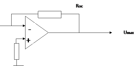 В этом варианте значение резистора в старшем разряде – R, в следующем по старшинству разряде 2R далее 4R и т.д. R/2n. Таким образом, «вклад» в общий ток старшего разряда будет вдвое больше, чем следующего и т.д. Будет или нет участвовать данный разряд в формировании тока I вых зависит от того 1 или 0 находятся в данном разряде входного кода. Тогда электронный ключ подключит или нет этот разряд к шине I вых. В результате, ток на выходе будет строго пропорционален поданному цифровому коду. Преимуществом данного варианта является значительно меньшее число резисторов, однако эти резисторы сильно различаются по номиналу, что неудобно в микроэлектронном исполнении. В результате вариант R-2R применяется значительно чаще. Обычно выходную величину удобней представлять в виде напряжения, а не тока. Преобразование обычно осуществляется с помощью операционного усилителя (см.Интернет). Простейший пример такого преобразования показан на рисунке: