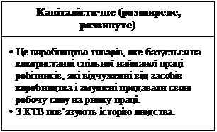 | | | | | | |  | | | Це виробництво життєвих благ не для особистого споживання, а для обміну, для продажу на ринку; це виробництво відокремлених виробників, пов’язаних між собою ринком