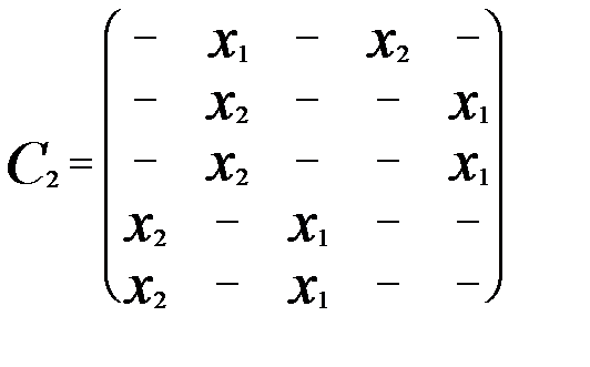 Если переход из состояния zi в состояние zj происходит под действием нескольких сигналов, элемент матрицы cij представляет собой множество пар "вход/выход" для этого перехода, соединённых знаком дизъюнкции. Для F- автомата Мура элемент cij равен множеству входных сигналов на переходе (zizj), а выход описывается вектором выходов: