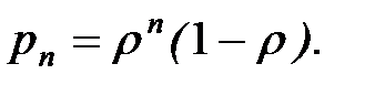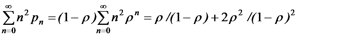 Пусть в первом уравнении n=1. Тогда (1+r)p1= p2+rp0 . Подставив сюда значение p1 из второго уравнения, находим p2=r2p0. Повторяя эти операции, получаем pn=rnp0 , причем Или Математическое ожидание числа заявок, находящихся в системе (приборе),