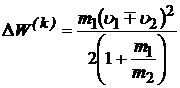 где Таким образом, при столкновении двух абсолютно неупругих тел происходит потеря кинетической энергии макроскопического движения, равная половине приведенной массы, умноженной на квадрат относительной скорости. Рассмотрим один частный случай, когда Разделим числитель и знаменатель в выражении (1.3) на В данном выражении, исходя из условия, что