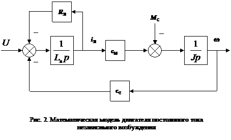 где L я – индуктивность якоря; i я – ток якоря; R я – сопротивление якоря; c е – коэффициент противо-ЭДС; ω – скорость вращения двигателя. Дифференциальное уравнение моментов на валу двигателя имеет вид: