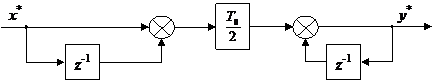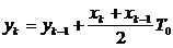 где yk-1, yk – значения выходной величины интегратора на k -1, k -ом тактах; xk – значение входной величины интегратора на k-ом такте; T 0 – период квантования. Рекурентная формула вычисления интеграла по методу трапеций: