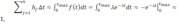 Разбиваем интервал (0; tmax) на n интервалов длиной Dt, а интервал (0;1), в который попадают случайные числа, на n интервалов, длина каждого из которых определяется как
