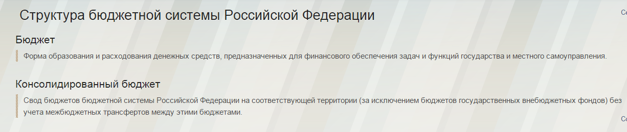 Бюджетная система Российской Федерации - основанная на экономических отношениях и государственном устройстве, регулируемая законодательством совокупность федерального бюджета, бюджетов субъектов Российской Федерации, местных бюджетов и бюджетов государственных внебюджетных фондов. Основной целью бюджетной системы является перераспределение валового внутреннего продукта для финансового обеспечения решения ключевых экономических, социальных, культурных и политических задач государства. В рассматриваемом звене наиболее полно проявляются все функции финансов одновременно: посредством таких инструментов, как налоги, акцизы, таможенные пошлины и пр. осуществляется перераспределение ВВП, а целый ряд государственных органов (Казначейство, Федеральная налоговая служба, Счетная палата РФ и пр.) организуют систему контроля над таким распределением.