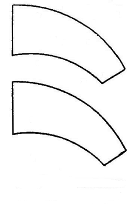 Нередко имеет место подравнивание целой фигуры по ее части. Если какая-нибудь часть фигуры особенно выделяется, она может определить собой восприятие всей фигуры. Если отчетливо заметно, что какая- либо сторона одной фигуры больше находящейся вбли-зи стороны другой фигуры, то и вся фигура может казаться больше второй, хотя в действительности обе они равны. На рис. 3.4.34 даны две одинаковые фигуры: верхняя дуга нижней фигуры больше нижней дуги верхней фигуры, благодаря чему вся нижняя фигура воспринимается больше и шире. Здесь можно обнаружить и влияние контраста. Вследствие контраста в