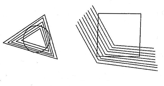 Иллюзия подравнивания возникает всегда, когда, давая сходную форму, повторяющую и несколько преувеличивающую особенность фигуры, мы оттеняем эту особенность. Иными словами, полная фигура будет казаться еще более полной в широком платье, и наоборот. Один и тот же круг, будучи вписан в больший, кажется сам более значительных размеров, чем если он окружает меньший круг (рис. 3.4.31).