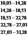 Скопление точек на диаграмме указывает на то, что с ростом текущих доходов возрастают и средние расходы семьи. Эта тенденция имеет явно линейный характер. Строим корреляционную таблицу (табл. 2.9), определив предварительно длины интервалов признаков по формуле (1.1). Тогда