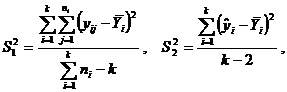 Дисперсии Для проверки гипотезы линейности связи между исследуемыми признаками составляется F -отношение: